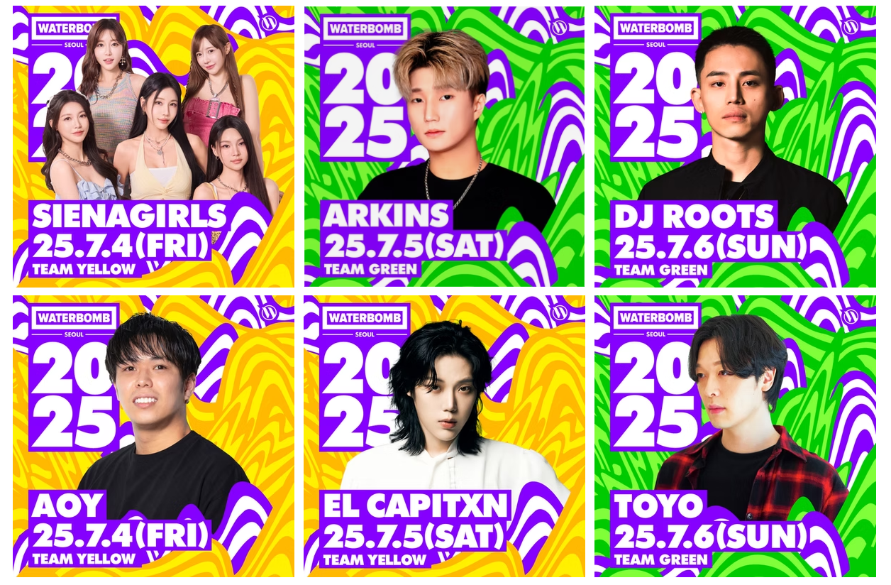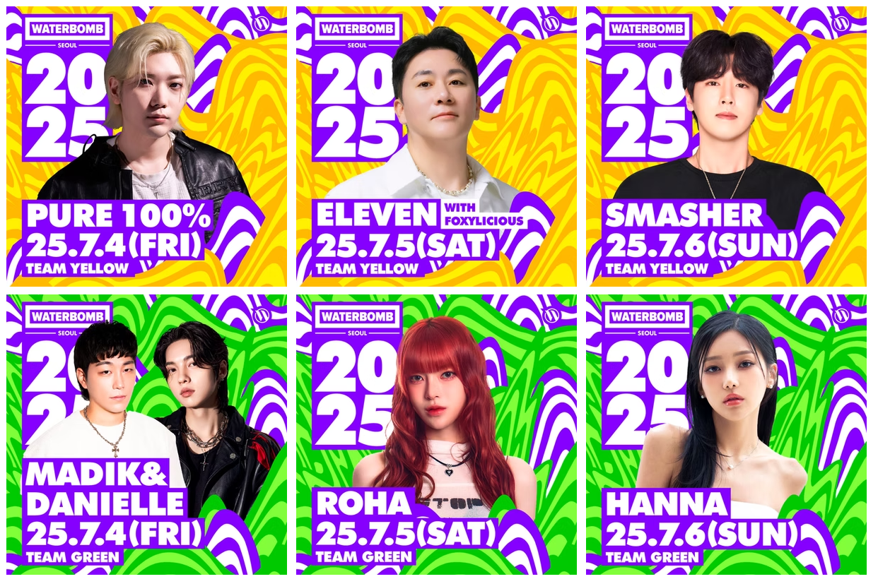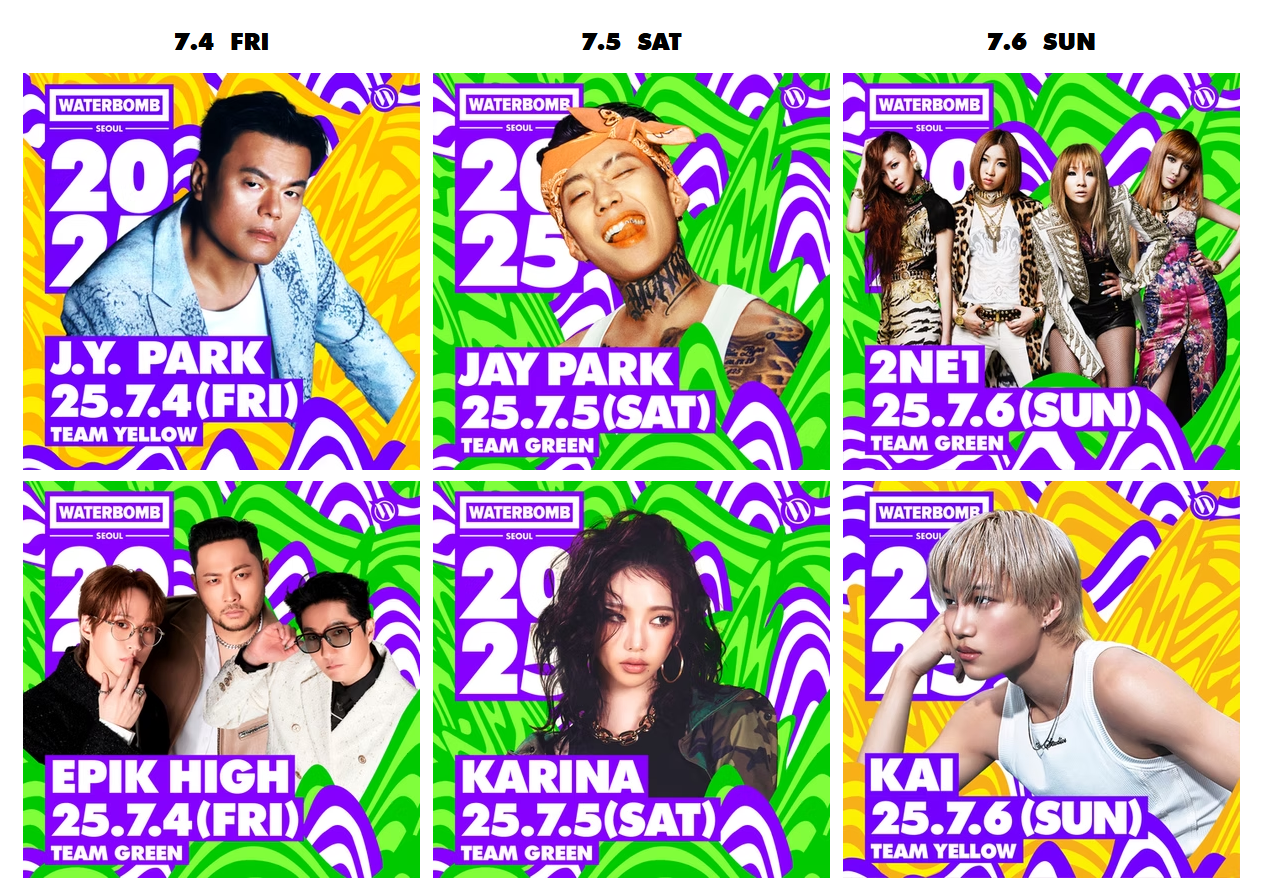 6월 기준 공식 홈페이지 및 주요 언론, 블로그를 통해 공개된 워터밤 2025 서울 라인업을 날짜별로 정리했습니다.