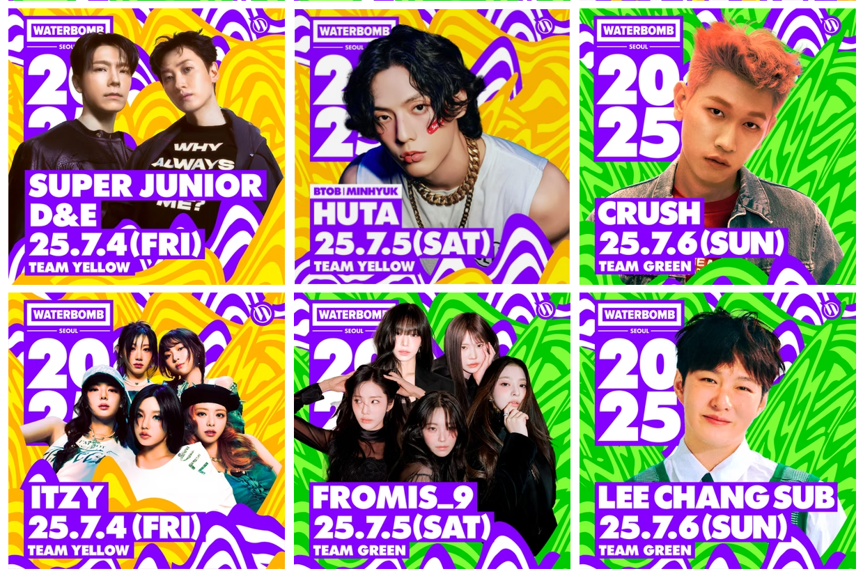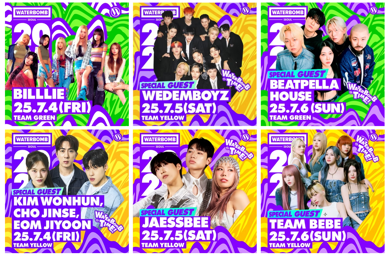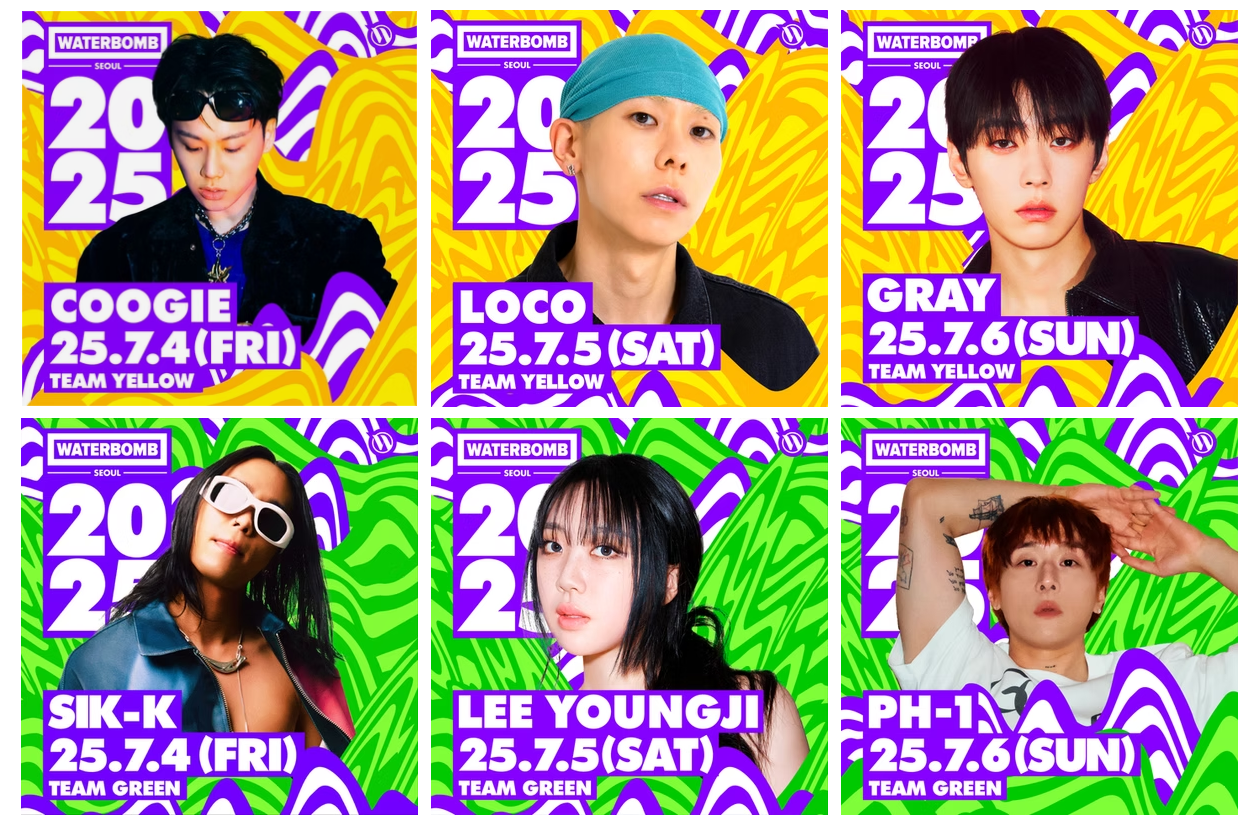 워터밤 2025는 K-POP 아이돌, 힙합, R&B, EDM 등 장르를 넘나드는 최정상급 아티스트들이 총출동!