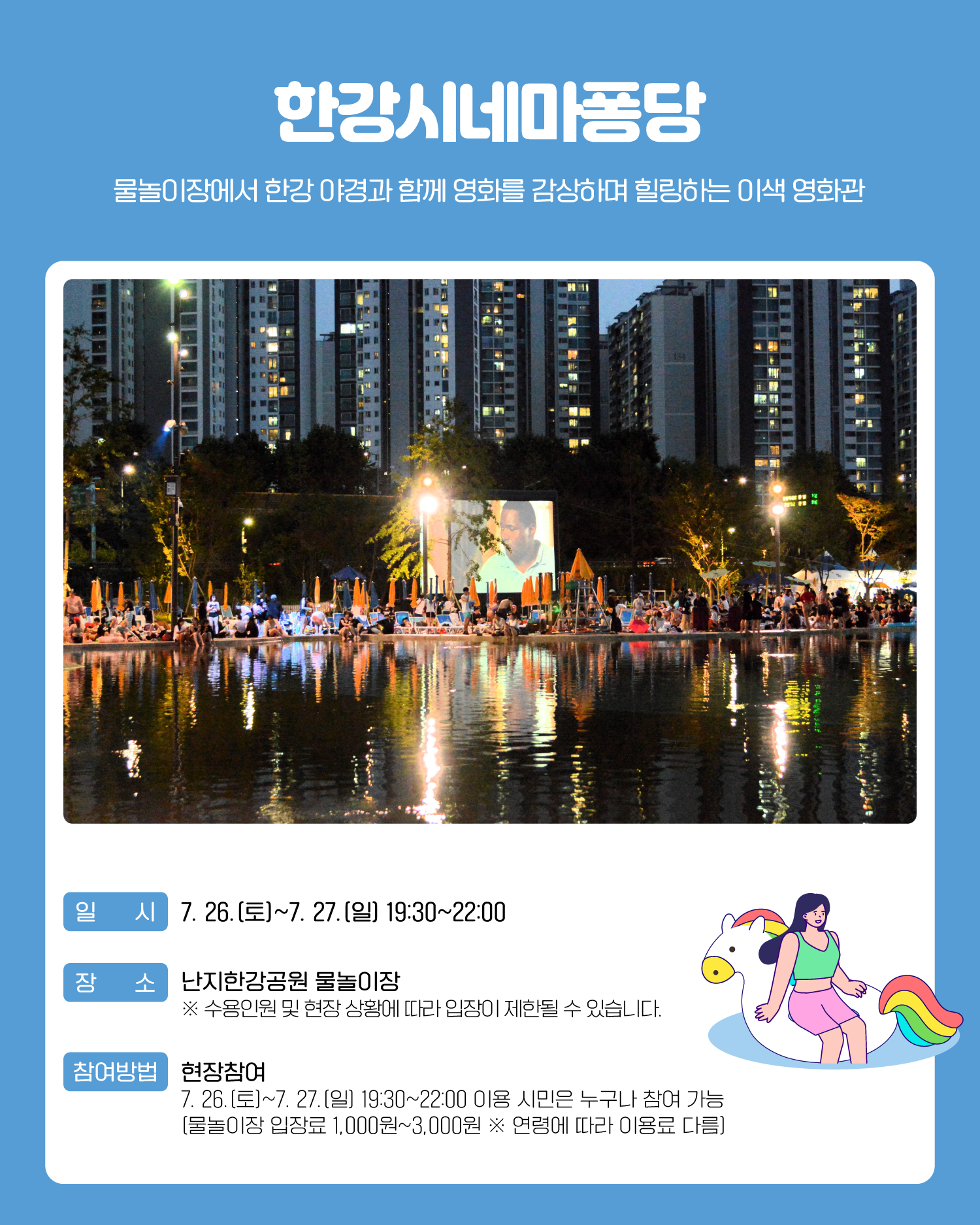 - 한강시네마퐁당: 튜브에 띄워 영화 감상!