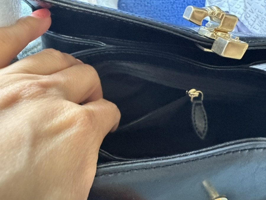 그리고 중간칸엔 아래와같이 지퍼와 주머니가 있어서 작은 것들 수납가능.