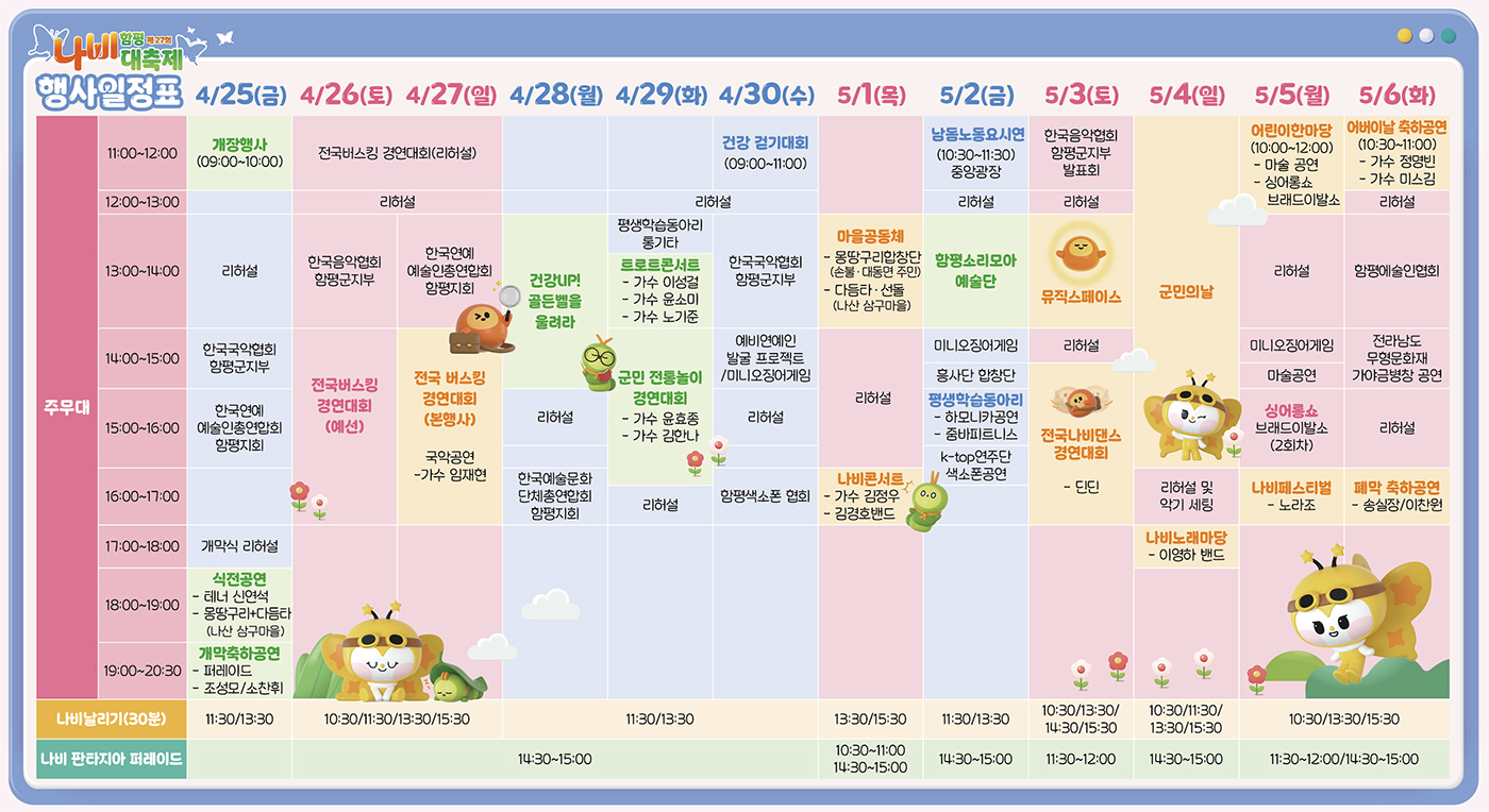 - 나비 페스티벌: 2025. 5. 5.(월) 16:00 (초청가수: 노라조)