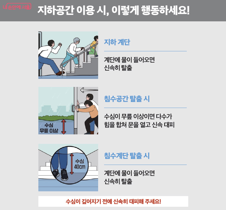 카테고리 없음 장마시작, 비가 너무 많이 오면 어쩌지? 물이 넘칠때 행동요령! by 인생은 영화처럼 2025. 6. 20. 시민행동요령 등 주요 안내 페이지 ○ 서울안전누리○ 스토리인 서울○ 국민재난안전포털 풍수해 재난신고(서울시 재난안전대책본부 상황실) ☎ 02-2133-0064~5 / 0090~2 공유하기 게시글 관리 인생은 영화처럼 저작자표시 비영리 변경금지 (새창열림)